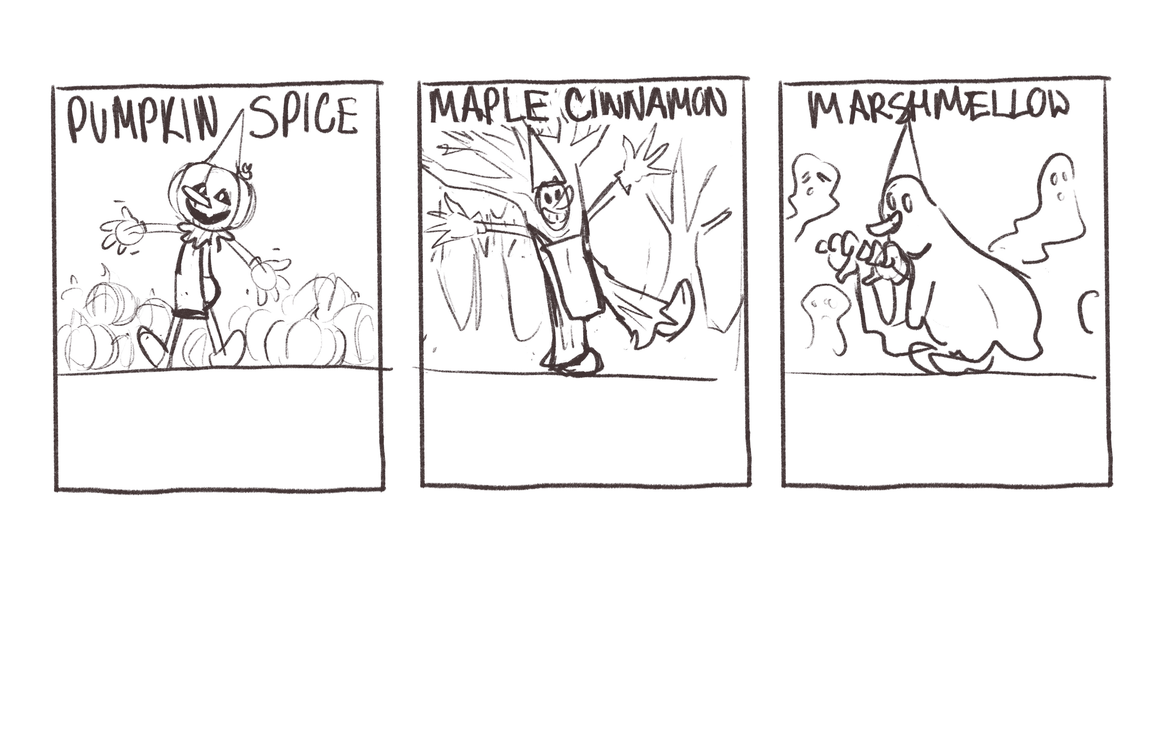 I choose Caffe Vita because I enjoyed their values and found their commercial featuring old cartoons to be a fun direction. I was inspired to make a modified cartoon version of their mascot Neapolitan puppet, Pulcinella, and have him featured on various fall coffee bags with Halloween creatures in the style of old cartoon posters.